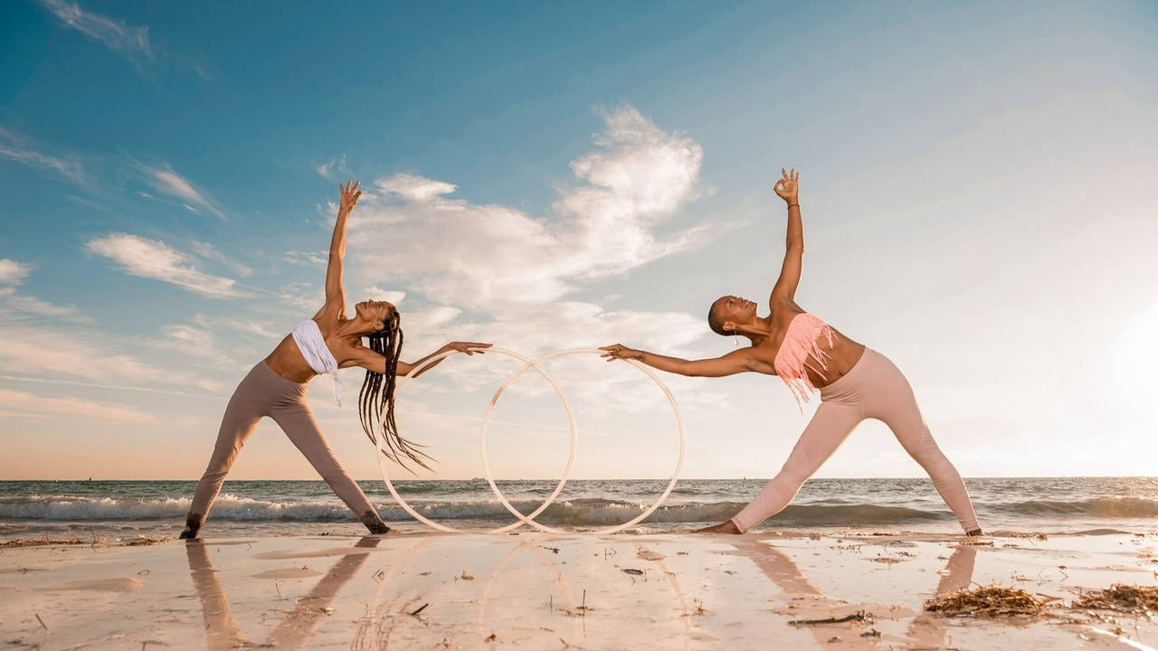 HoopYogini™ is a practice that centers and grounds. We prefer a heavier and wider hoop (no greater than 1.5 lbs) rather than a super lightweight polypro.